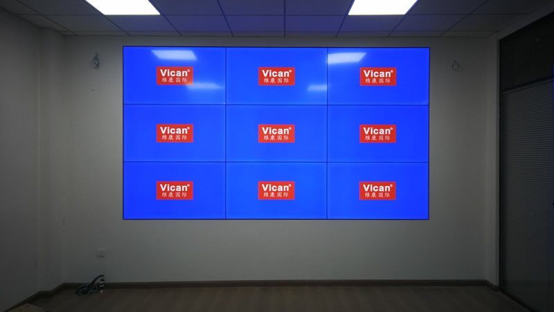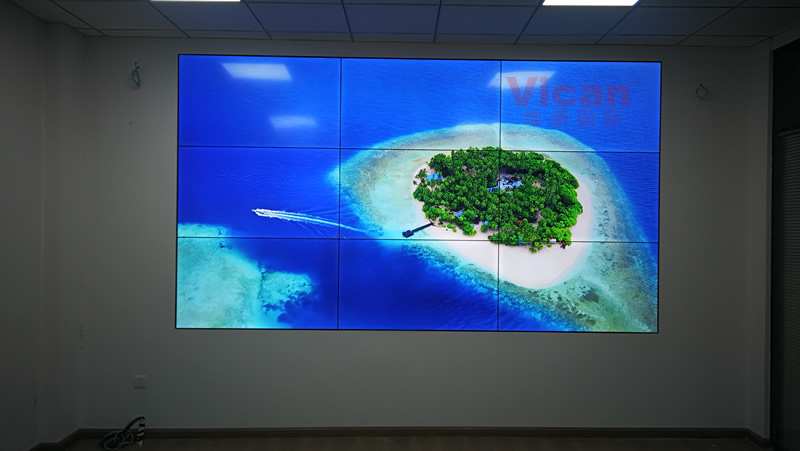 我公司為南昌郵政公司提供的這套會(huì)議室大屏,采用3X3拼接、55寸超窄邊液晶拼接屏,雙邊拼縫拼縫僅有3.5mm,主要用來(lái)做會(huì)議信息顯示,如上圖所示。