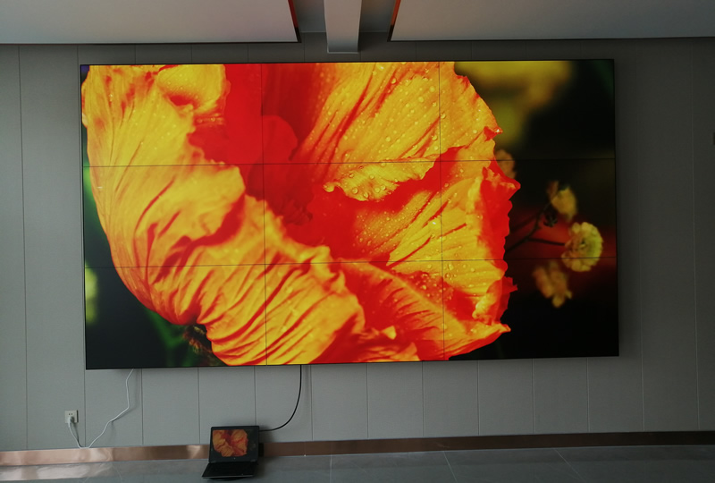 該案例中,維康國際為日照莒縣如意社區(qū)黨群服務(wù)中心提供一套會議大屏,采用3x3拼接、55寸0.88mm液晶拼接屏,超窄邊設(shè)計,畫面顯示清晰亮麗,一體化顯示效果很好,如上圖所示。