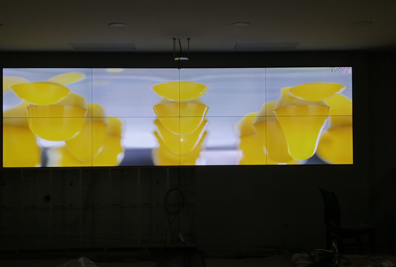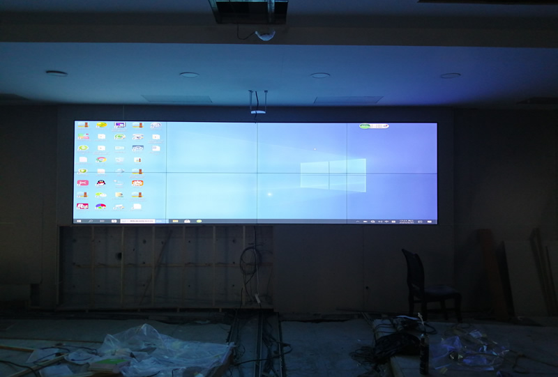 本案例中,維康國際為煙臺供電局提供一套展廳液晶拼接屏,采用2x4拼接、55寸0.88mm液晶拼接屏,超窄邊設(shè)計,雙邊物理拼縫僅有0.88mm,我們從上圖可以看出,大屏畫面基本不受黑邊影響,有著很好的畫面一體化顯示效果。