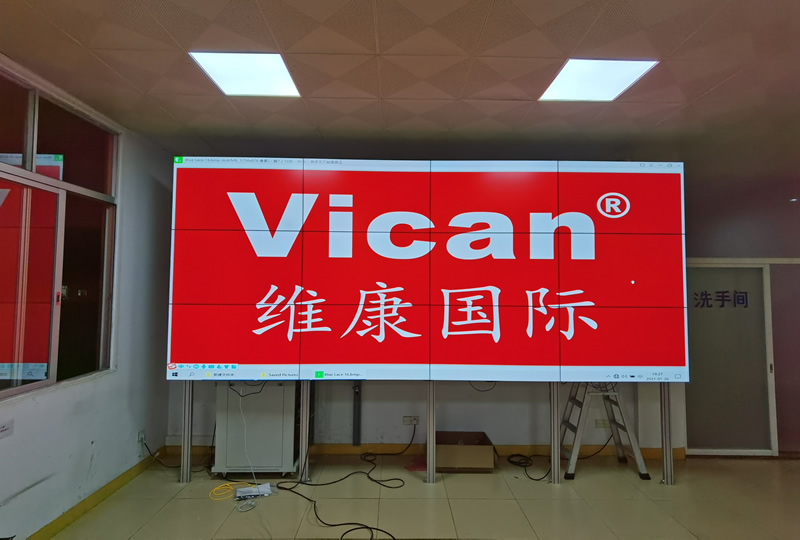 該案例中,維康國際為廣東揭陽某實業(yè)公司提供一套大屏幕顯示產(chǎn)品,主要用來會議顯示使用,由3x4拼接、55寸液晶拼接屏組成,屏體采用三星1.7mm原裝面板,如上圖所示,大屏幕畫面清晰亮麗,一體化顯示效果好。