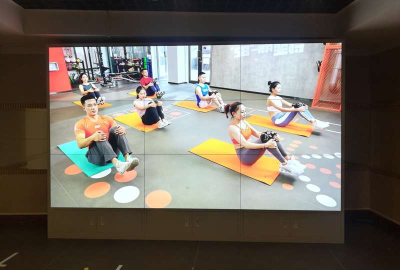 本案例中,維康國際為深圳市前海灣某健身會(huì)所提供一套高清顯示屏,采用3x3拼接、55寸液晶拼接屏,屏體采用LG原裝面板,物理拼縫僅0.88mm,如上圖所示,大屏畫面清晰、有著很好的一體化顯示效果。