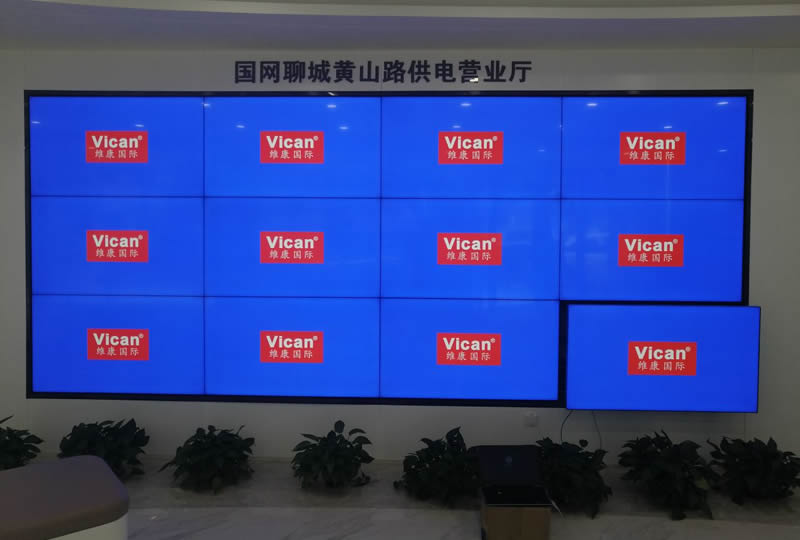 本案例中,維康國際為國家電網(wǎng)聊城供電公司營業(yè)廳提供一套拼接屏,采用3x4拼接、55寸液晶拼接屏,如上圖所示。