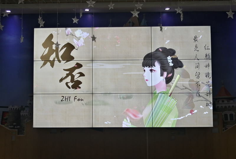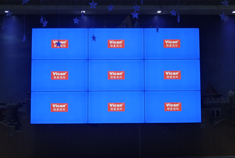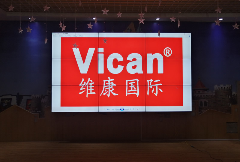 本案例中,維康國(guó)際為深圳寶安中心幼兒園提供一套高清顯示屏,采用3行3列、55寸液晶拼接屏,雙邊拼縫僅有3.5mm,有著很好的 大屏一體化顯示效果。