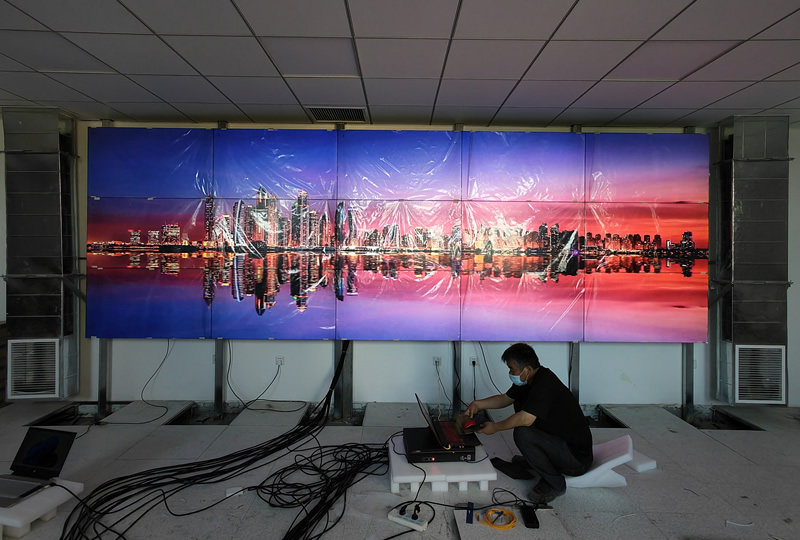 本案例中,維康國(guó)際為河北保定卷煙廠提供一套監(jiān)控大屏,采用3行5列、55寸LG液晶拼接屏,拼縫為3.5mm,采用前維護(hù)液壓支架安裝,維護(hù)更簡(jiǎn)單便捷。
