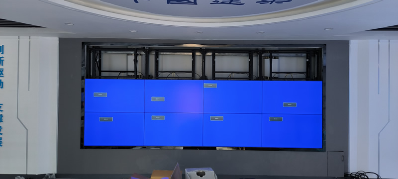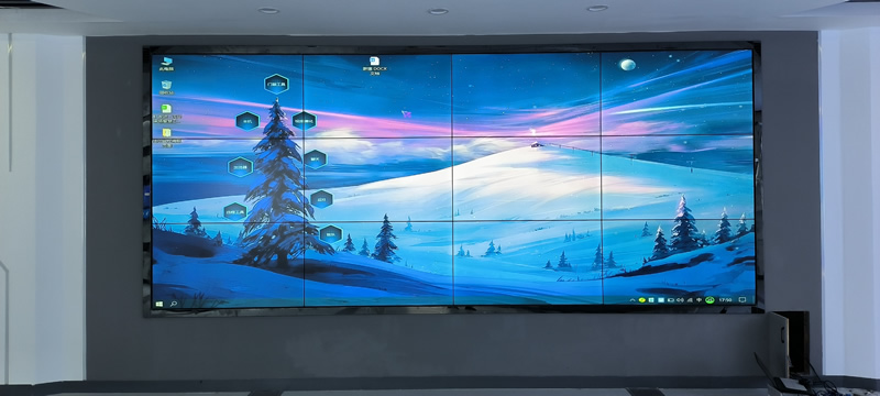本案例中,維康國(guó)際為中建八局安圖縣某項(xiàng)目部提高一套會(huì)議室顯示大屏,采用3*4拼接、3.5mm拼縫的55寸拼接屏,壁掛式安裝,更顯美觀大氣。