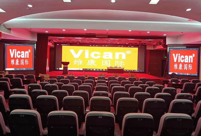 本案例中,維康國際為濟南市世紀金榜集團提供一套會議廳顯示屏,如上圖所示,大屏幕顯示清晰,超大尺寸,視覺效果好。