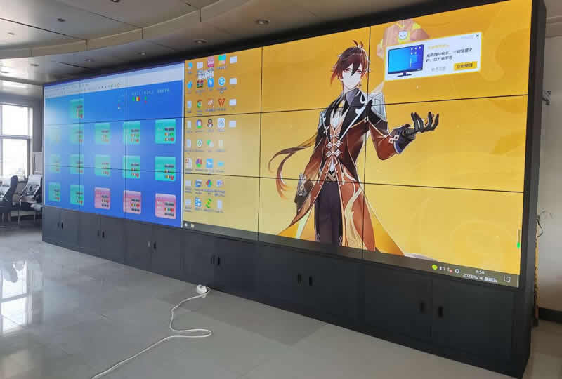 本案例中,維康國際為保定市某電力局提供一套指揮中心大屏,采用3行6列、55寸液晶拼接屏,雙邊拼縫為3.5mm,大屏幕顯示清晰,色彩柔和,支持24小時長時間不間斷的運(yùn)行工作。