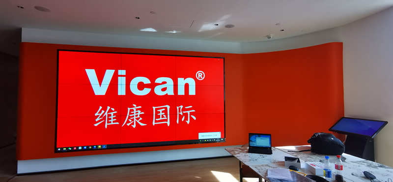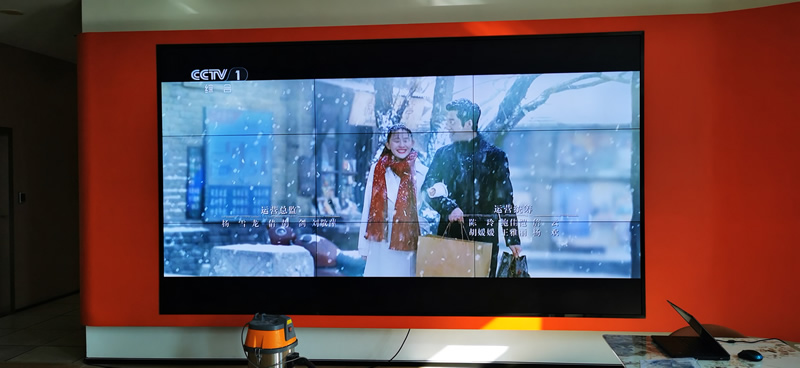 本案例中,維康國際為東莞市電視臺辦公室提供一套顯示大屏,采用3*3拼接、55寸液晶拼接屏,0.88mm超窄邊邊框,如上圖所示,屏幕顯示清晰,色彩豐富,一體化顯示效果好。