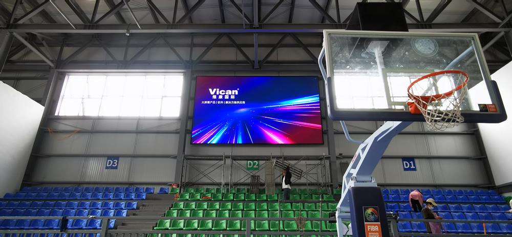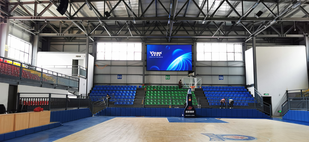 本案例中,維康國際為涼山金陽某體育館提供3套高清LED顯示屏,如上圖所示,采用高清、高亮顯示屏幕。