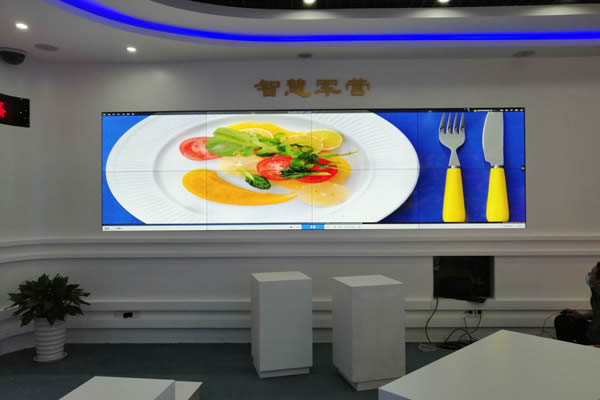 這套大屏顯示系統(tǒng)由兩組55寸0.88mm液晶拼接屏(其中一組為弧形拼接)、一組弧形軟模組的p1.875小間距LED、若干臺(tái)觸摸查詢一體機(jī)組成,如上圖所示。
