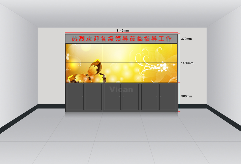 2x3機柜式帶LED條屏,46寸液晶拼接屏尺寸效果圖