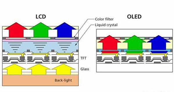 OLED有機(jī)材料層很薄,響應(yīng)速度快、色域?qū)?,可以?shí)現(xiàn)柔性顯示,但有機(jī)發(fā)光材料容易與環(huán)境中的水氧發(fā)生反應(yīng),而使得器件失效,使用壽命相對較短。
