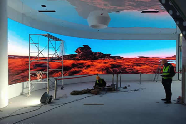 在一些本身是弧形的場(chǎng)合,一些客戶想要安裝弧形的弧度來安裝顯示大屏,也有一些是直接需要作出弧形的,而弧形也分別內(nèi)弧形或外弧形,使用軟模組安裝都可以實(shí)現(xiàn),如果弧度比較小,那么用普通的支架安裝即可;如果弧度比較大,那么就要定制支架,把支架的本身做成弧形結(jié)構(gòu),然后把軟模組貼上去。