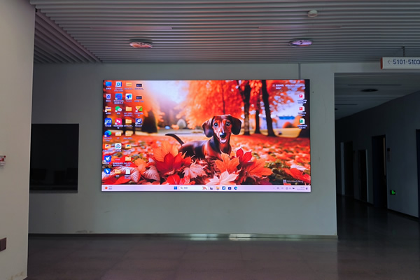 采用模塊化顯示單元(LED顯示屏 / 液晶拼接屏)構(gòu)建標(biāo)準(zhǔn)矩形陣列,常見的液晶拼接屏規(guī)格包括 2×2、3×3、4×4 等組合模式,而LED顯示屏的模組尺寸小,拼接更靈活。在政府會議中心、企業(yè)報(bào)告廳等場景中,該方案通過統(tǒng)一的邊框設(shè)計(jì)與色彩校準(zhǔn),實(shí)現(xiàn) PPT 演示、視頻播放等內(nèi)容的高清展示。其優(yōu)勢在于工程實(shí)施難度低、維護(hù)成本可控。一般情況下,LED顯示屏比較適用于以單一內(nèi)容展示為主的傳統(tǒng)會議場景;在異形畫面展示、多源信息分屏呈現(xiàn)時(shí)液晶拼接屏更適合。