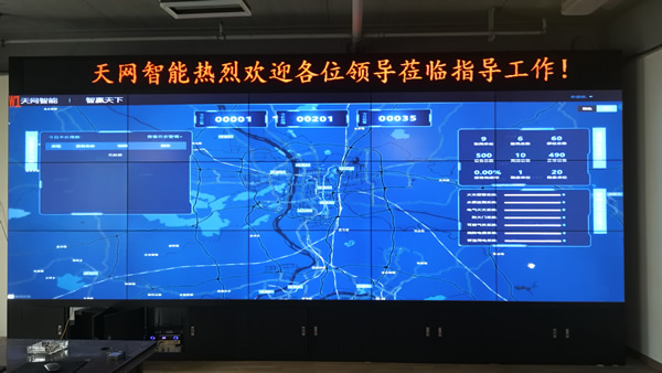 這套大屏安裝在湖南省天網(wǎng)智能科技有限公司的展廳,采用3x5拼接、55寸液晶拼接屏,雙邊拼縫為3.5mm,主要用來大數(shù)據(jù)顯示使用。