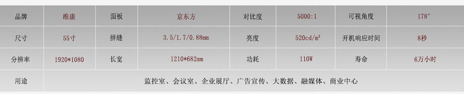 京東方液晶面板、性價(jià)比高、彩色佳,主要應(yīng)用于監(jiān)控室、會(huì)議室、展廳等