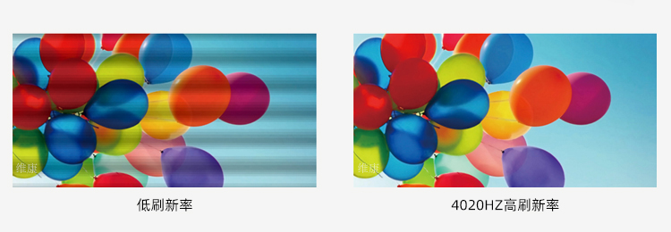 維康國(guó)際的P1.2小間距l(xiāng)ed顯示屏的刷新率高達(dá)2880~3840Hz,在相機(jī)拍攝時(shí)完全沒(méi)有橫線干擾,沒(méi)有水波紋現(xiàn)象。