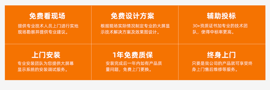 圓弧形LED顯示屏的安裝特別考驗(yàn)技術(shù)人員的實(shí)力,我公司針對(duì)這一點(diǎn)提供全國(guó)上門(mén)安裝與調(diào)試,并且后期有售后問(wèn)題還提供終身上門(mén)更換及檢修服務(wù),保證用戶長(zhǎng)久使用。