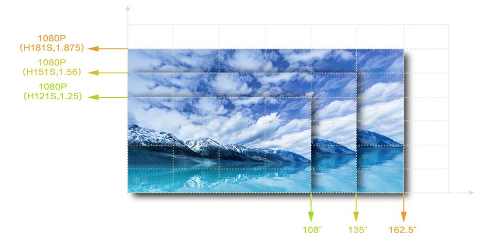 采用16:9的比例設計能輕松拼接實現(xiàn)FHD/2K/4K分辨率,輸入分辨率與顯示分辨率點對點,使顯示畫面能夠完美的匹配呈現(xiàn)16:9片源 。播放視頻時無扭曲,變形,模糊現(xiàn)象。